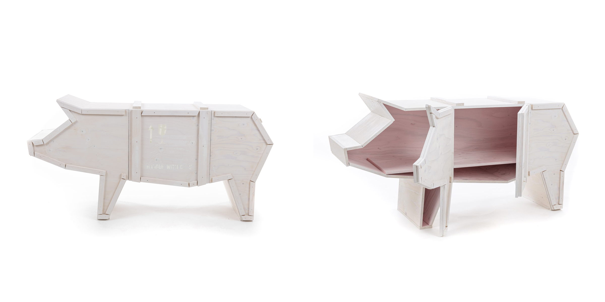 This furniture is an absurd fictional when suggesting that the animals are physically shipped. Possible? To better express the concept we have chosen the three classic farm animals. Also, every imperfection might be present in the products is a feature of the product itself, because in order to stress the poetic of the idea we have carried out this furniture with the same processes that are used to produce true crates.